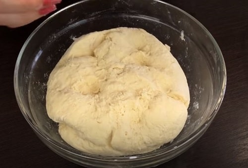 - Потихеньку додайте борошно. Замісіть еластичне тісто, не прилипающее до рук. Сховайте під рушник, залиште на столі на півгодини.