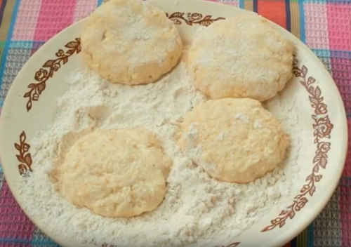 Обваляйте заготовки борошном.