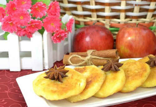 Рецепт не можна віднести до дієтичним, але калорійність у нього набагато менше, ніж у сирників, смажених на сковороді. Крім яблук, кладіть на свій розсуд родзинки, горіхи.