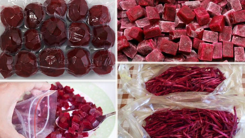 Рада. Рекомендується заморожувати буряк невеликими порціями, щоб використовувати пакет напівфабрикату на одне блюдо. Повторне заморожування не допускається – овоч втратить корисні речовини і зіпсується.