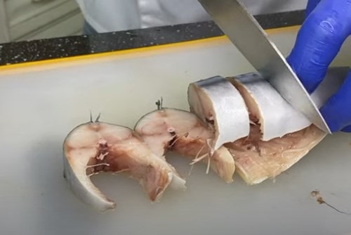 - Обробити скумбрію на філе, потім поріжте його порційними шматочками.