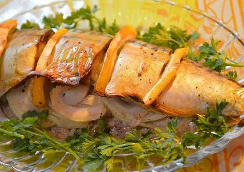 Рецепт скумбрії, запеченої з лимоном і цибулею