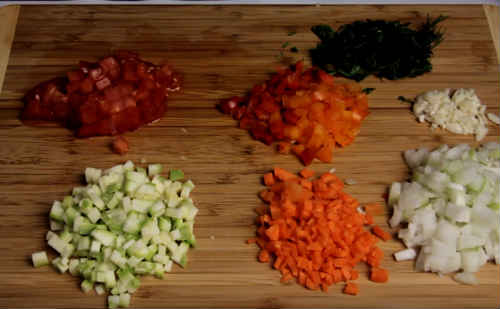 Аналогічно покришіть інші овочі пропорційно один одному.