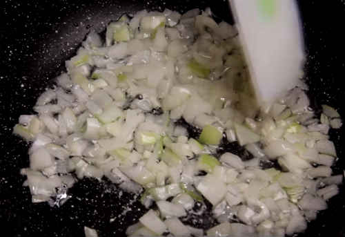 Обсмажте цибулю з перцем в невеликій кількості олії до прозорості.