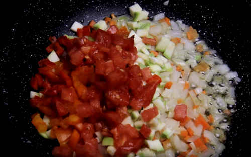Слідом відправте інші овочі. Смажте до готовності, постійно помішуючи вміст сковороди.