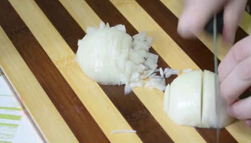 Цибуля постарайтеся покришити дуже–дуже дрібно, як на фото.