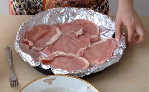 - Якщо хочете приготувати дуже соковите м’ясо, обсмажте його перед публікацією на деко – це «прихопить» соки та гарантовано залишить всередині. Масло на сковорідку наливати не потрібно.
