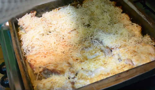Просыпьте блюдо сиром. Поверніть назад в духовку ще на 10-15 хвилин. Сигналом про готовність стане з’явилася гарна скоринка.