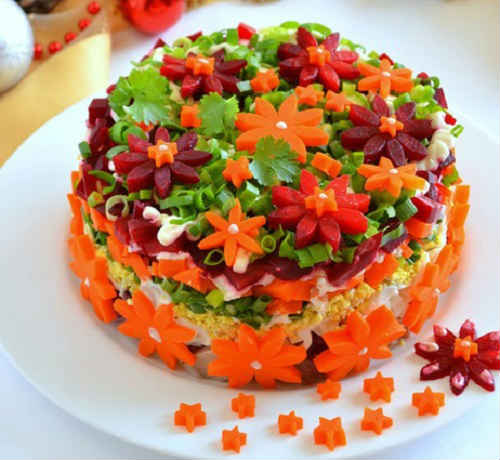 - Коли закуска настоїться, обережно вийміть кільце. Прикраса придумайте самостійно.