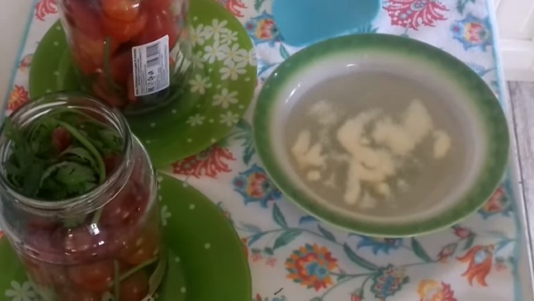 5. Закуска ставиться з ніг на голову, ховається на 24 години шаллю, для рівномірного охолодження. Зберігають такі помідори в холодному місці.