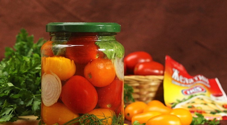 Простий рецепт помідорів в желе на зиму без замочування желатину
