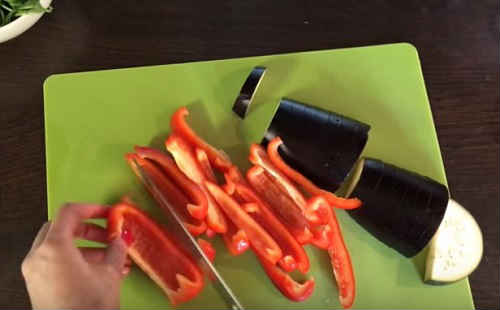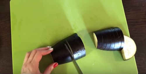 Паралельно баклажан наріжте півкільцями.
