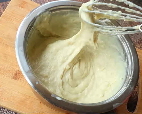 При появі перших ознак, зніміть з конфорки. Тісто вийде досить густим, як на фото.