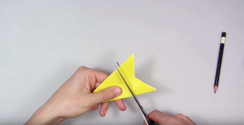 - Класичний спосіб складання аркуша паперу трикутником з послідуючим вирізанням фігур