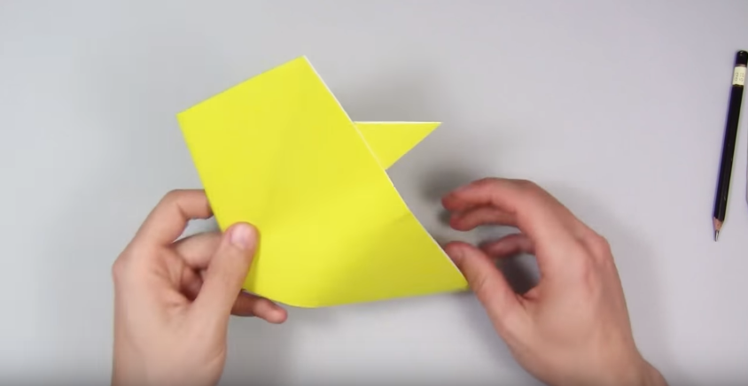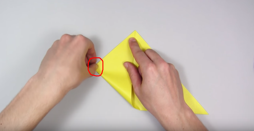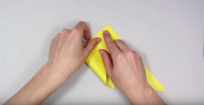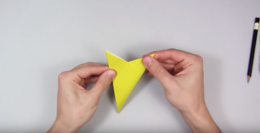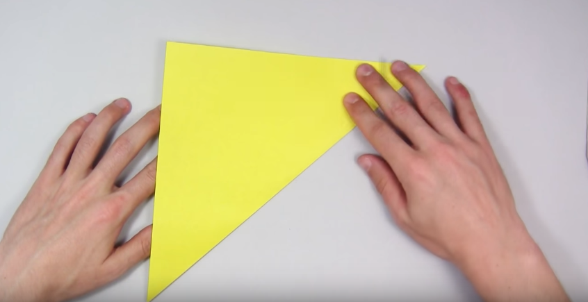 1. Беремо квадратний аркуш паперу і складаємо його навпіл, щоб вийшов трикутник.