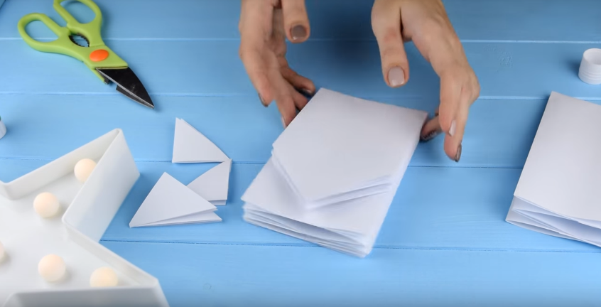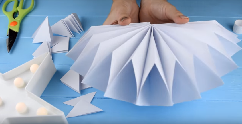 Створення сніжинки шляхом складання паперу в трикутник дозволяє отримати ідеально симетричну сніжинку.