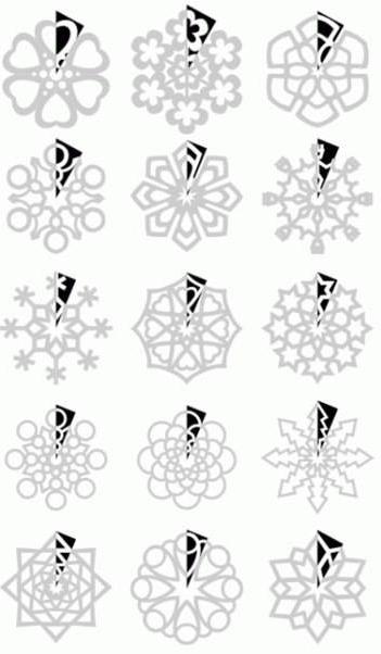 Використовуючи цей шаблон ви зможете вирізати чудові сніжинки самих неймовірних форм. Але щоб вам було з чого починати, ознайомтеся з шаблонами, поданими нижче.