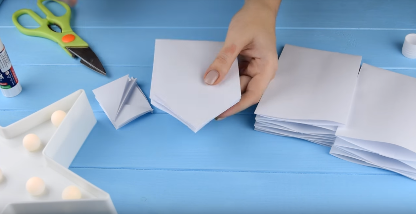 Для їх виготовлення знадобляться 7 однакових за розміром аркушів паперу (у прикладі використовуються стандартні аркуші формату А4), ножиці і клей для паперу.