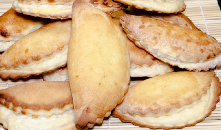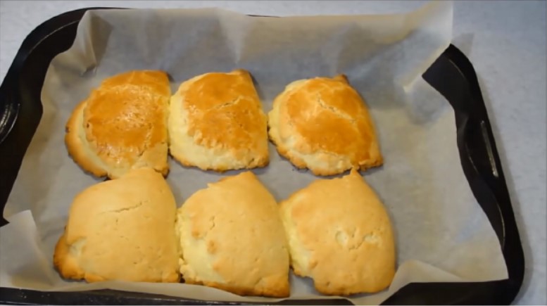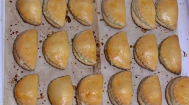 6. Випікати близько 1/3 години на середньому вогні. Перевірити готовність сочников можна за зовнішнім виглядом. Тісто тут тонке, тому якщо вони виглядають готовими, то вони дійсно пропеклися.