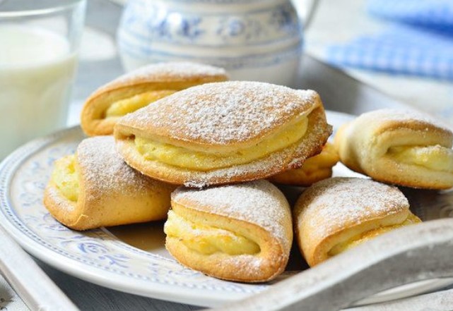 Тісто виходить ніжне, за смаком дуже схоже на молочні коржики. А начинка просто незрівнянна.