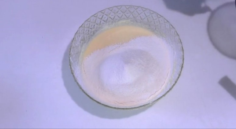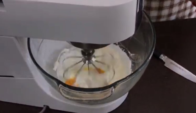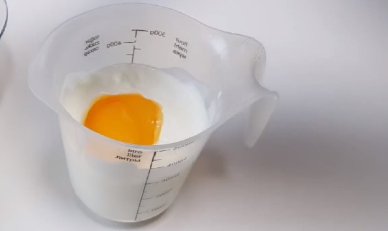 1. В чаші комбайна змішати сметану з цукром, потім додати яйце.