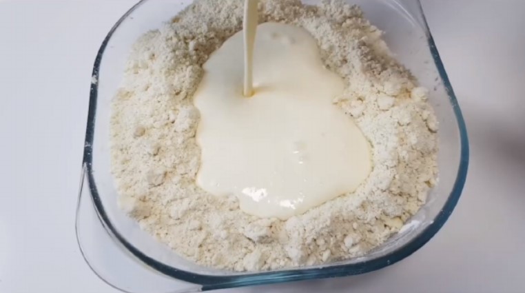 3. Влити рідину борошняну суміш і приготувати м’яке, еластичне тісто. Відправити відпочивати в холодильник на 20 хвилин і більше.