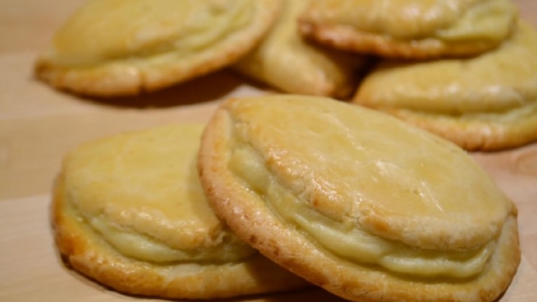 Начинка в сочниках, приготовані за цим рецептом, не має кремової консистенції. Але у неї натуральний домашній смак, як у бабусі.