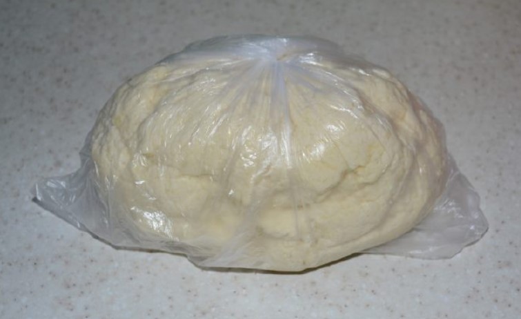 3. Тісто загорнути в пакет і відправити в холодильник, щоб вона охолола і стало більш тугим.