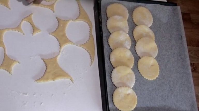 4. Тісто розкачати і вирізати формочками. Товщина заготовок повинна бути близько 5 мм. Занадто товсті поволі готуватися, а тонкі перетворяться в хрустке печиво.