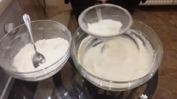 3. Після порціями додати борошно. Її треба просіяти, так тісто вийде ніжним і еластичним.