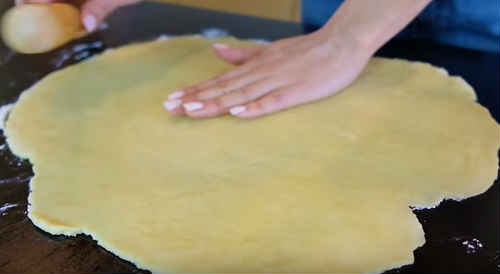 Перекладіть тестовий ком на припудрений борошном стіл. Розкачайте в пласт товщиною приблизно 1-1,5 см, не більше.