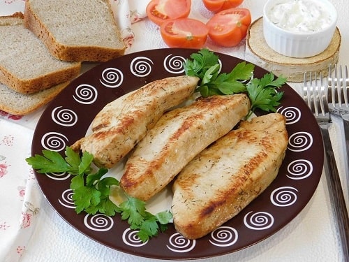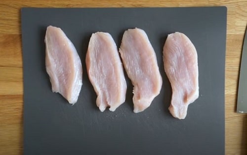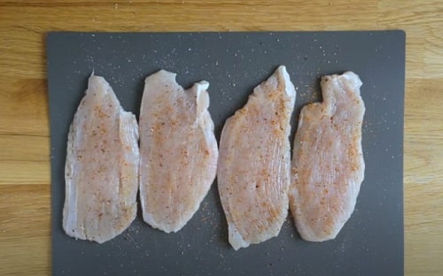 - Поділіть філе птиці на стейки, помийте, просушіть. Пересипьте приправами, сіллю, натріть шматки.