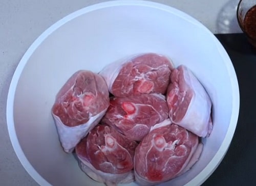 - Підготуйте гомілки – обполосніть, просушіть. Розрубати на порції, щоб кісточка виявилася всередині.
