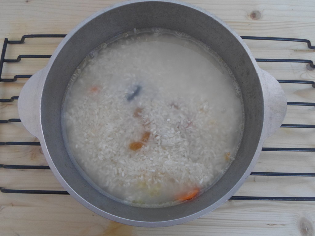 Рисову крупу переберіть, помийте і покладіть до продуктів в казан.