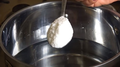 - Зробіть розсіл, додавши в киплячу воду сіль з цукром.