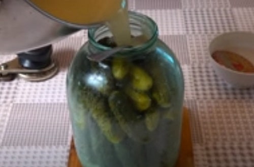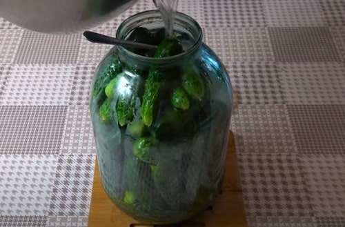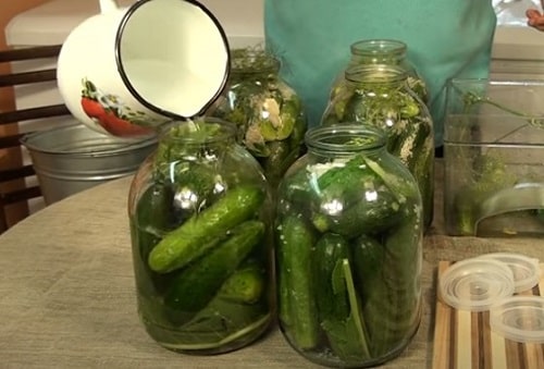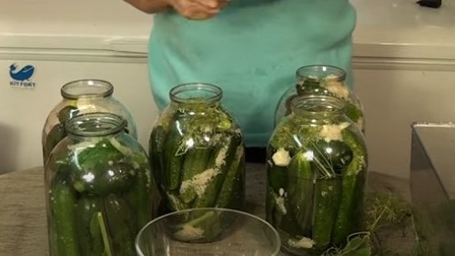 Тут поєднані обидва способи – холодним розсолом ми солимо огірки, а потім заливаємо гарячим і закатуємо.