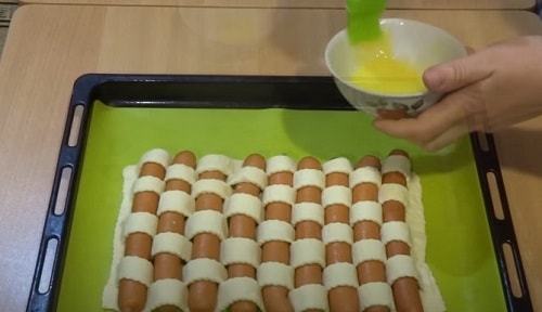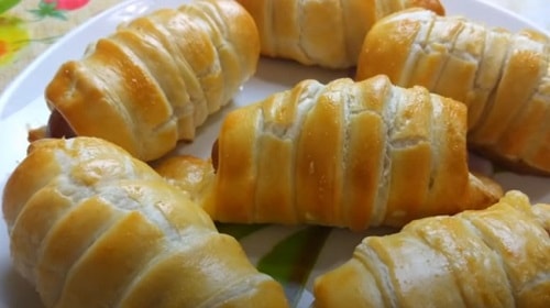 З тіста на дріжджах закуска виходить більш пишною, ніж зі звичайного тіста. Беріть Сосиски хорошої якості, тут економія недоречна. З якого м’яса вони зроблені – значення не має. Дріжджове тісто використовується не тільки листкове, якщо ви зайдете на іншу сторінку, то зможете познайомиться з масою цікавих рецептів.