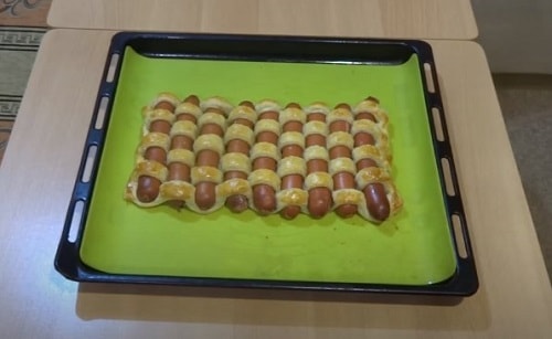 Сосиски з сиром в листковому тісті, запечені в духовці