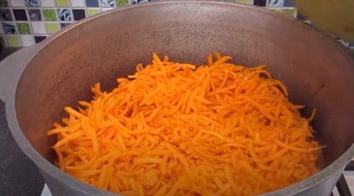 - Додайте до цибулі морквяну стружку, продовжуйте смажити до красивої рум'яності протягом 10 хвилин.