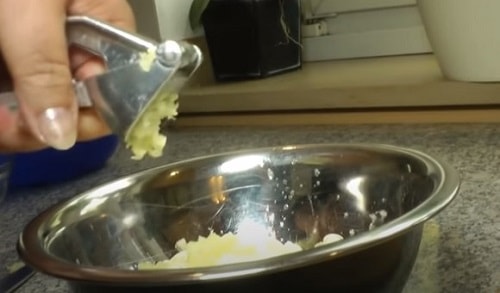 Роздушіть пресом часникові часточки, відправте в чашу.