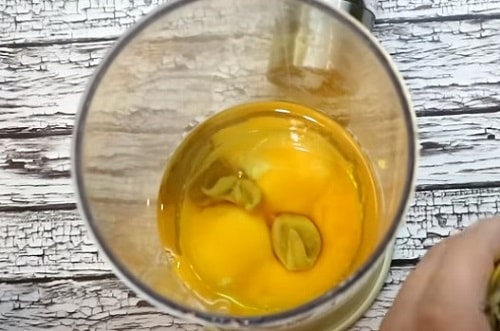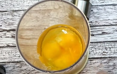 Почнемо з майонезу. Відокремте з яєць жовтки, складіть в чашу блендера.
