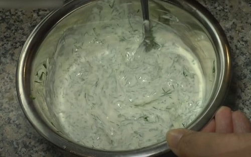 - Засипте приправи. Добре перемішайте соус, дайте настоятися. Потім приступайте до приготування шаурми.