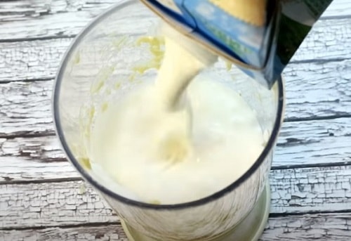 - Змішайте в посудині майонез зі сметаною, залийте ряжанку, подрібніть до однорідної консистенції.