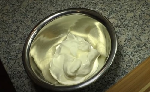 - Змішайте сметану з майонезом, ретельно перемішайте.