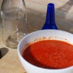Вміст каструлі бажано збити за допомогою блендера до утворення однорідної маси. В цей же час додається оцет. Отримана суміш проціджують через дрібне сито. Радиться закатати соус табаско кришкою на два тижні, а лише потім відкривати і використовувати. Отриманий соус можна зберігати в холодильнику до півроку.