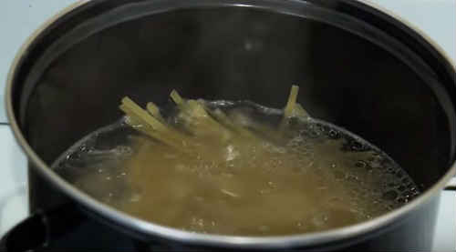 Тримайте найбільш простий варіант пасти. Крім спагетті, можна використовувати будь-які інші макаронні вироби.
