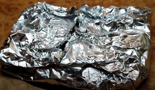 - Викладіть на фольгу. По центру кожної заготовки покладіть по шматочку масла, акуратно загорніть.
