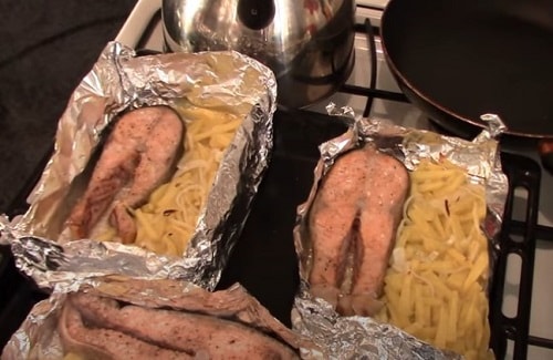 - Після приберіть верх фольги, почекайте, поки верх рибки підрум’яниться, потім дістаньте і отримуйте задоволення.