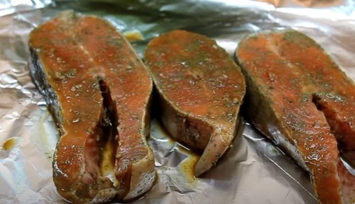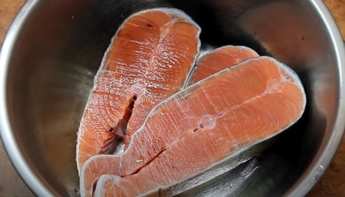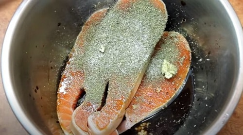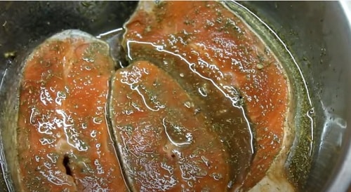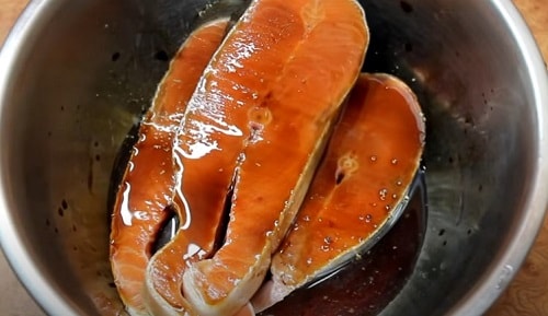 - Обробити тушку кети стейками, помістіть в маринад на півгодини.