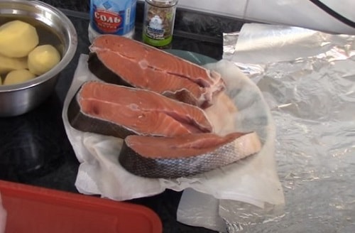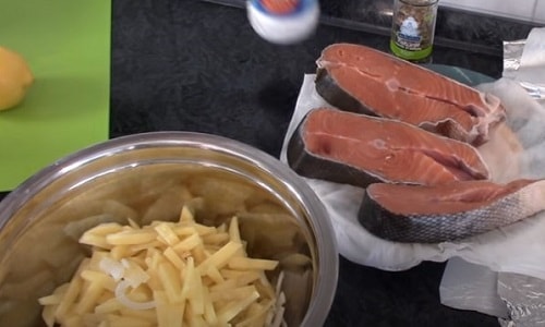 Як приготувати стейки кети з картоплею і сиром